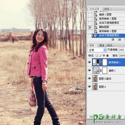 步骤3:全部点确定,然后把这层 渐变映射调整层 的不透明度设置为10%,效果就出来了,再精修一下:
