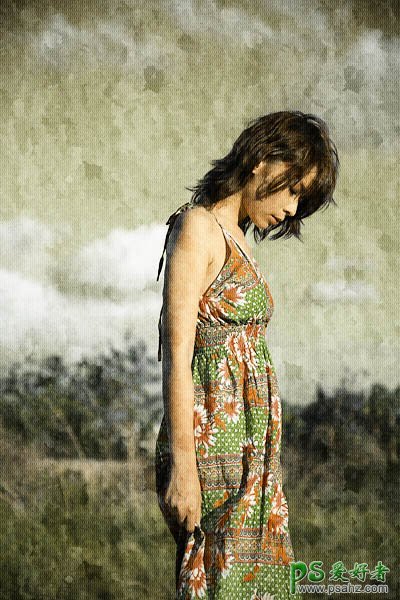 PS给外拍美女写真照调出颓废的发黄老照片效果