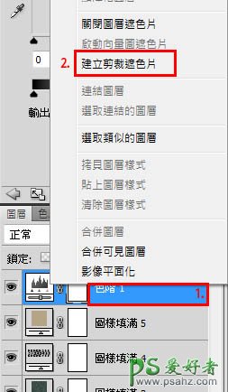 11、点选材质,创建滤色调整图层。 在“色阶”图层空白处按右键,选择“创建剪贴蒙版” 。