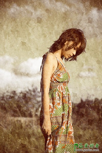 PS给外拍美女写真照调出颓废的发黄老照片效果