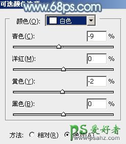 6、创建可选颜色调整图层,对白色进行调整,参数设置如图12,确定后把图层不透明度改为:50%,效果如图13。这一步微调图片高光部分的颜色。
