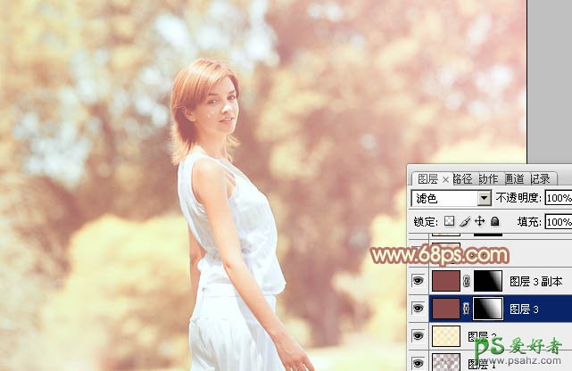 10、新建一个图层填充红褐色:#894C4A,混合模式改为“滤色”,按住Alt键添加图层蒙版,用白色画笔把右上角部分擦出来,给图片增加淡红色高光,效果如下图。如果觉得高光还不够明显,可以把当前图层复制一层。