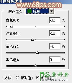 今天我们来和大家共同学习一篇PS后期调色实例教程,Photoshop调出欧美少妇淡黄的艺术色彩。 最终效果 原图 1、打开素材图片,创建可选颜色调整图层,对绿色进行调整,参数设置如图1,效果如图2。这一步把背景中的绿色转为黄绿色。 <