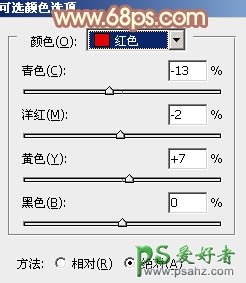6、创建可选颜色调整图层,对红、黄、白进行调整,参数设置如图17 - 19,效果如图20。这一步主要给图片增加红色。
