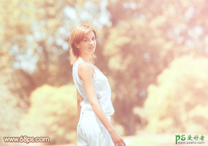 Photoshop调出欧美少妇淡黄的艺术色彩