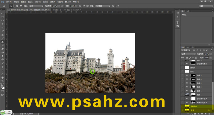 1.将原图复制一层,利用图章工具(S)将人物修掉先。(由于这张图人物不能很好的凸显出来,那么干脆我们就不要人了,直接调景吧。)使用图章时可从如图所示的1处取点进行修整。