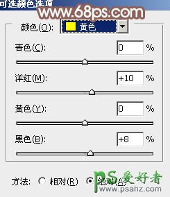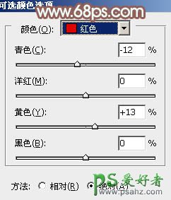 8、创建可选颜色调整图层,对红、黄、白进行调整,参数设置如图22 - 24,效果如图25。这一步主要把背景部分稍亮的黄色转为黄褐色。