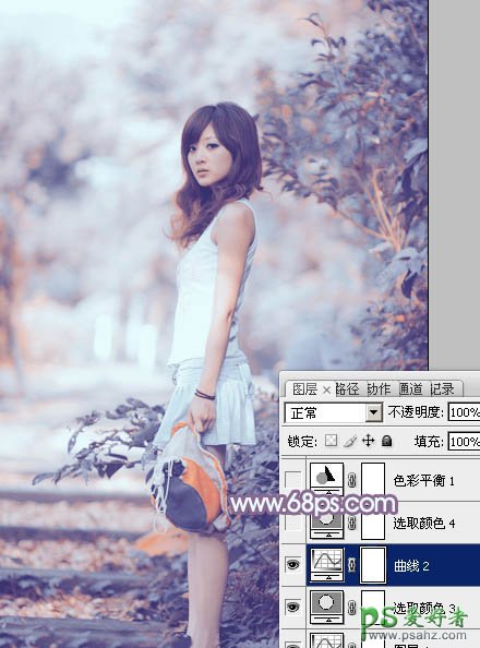 ps非主流调色教程:给清纯的非主流美女图片调出蓝紫色