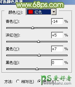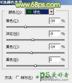 8、创建可选颜色调整图层,对红、黄、绿进行调整,参数设置如图27 - 29,效果如图30。这一步给图片增加黄绿色。