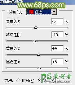 2、创建可选颜色调整图层,对红、黄、白、黑进行调整,参数设置如图3 - 6,效果如图7。这一步主要给图片高光部分增加淡青色。