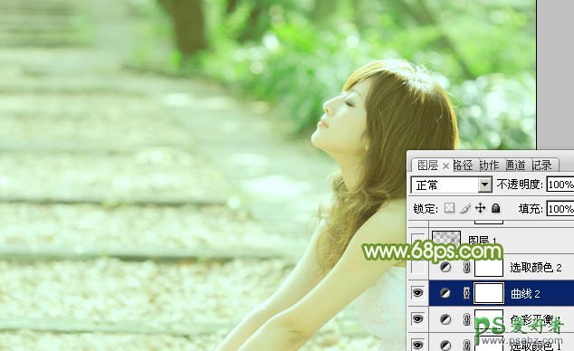 美女图片调色ps技术:给春日里美女素材照片调出黄色调效果
