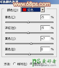 3、创建可选颜色调整图层,对红、黄、白、黑进行调整,参数设置如图6 - 9,效果如图10。这一步给图片增加橙红色。