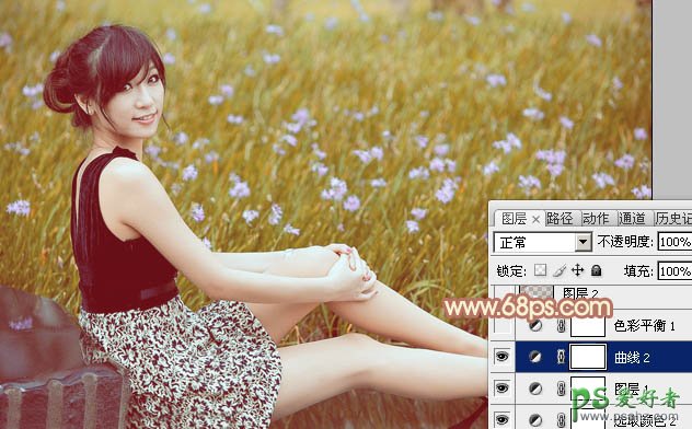 PS调色教程:给草地上的外拍美女写真照调出柔和的阳光效果