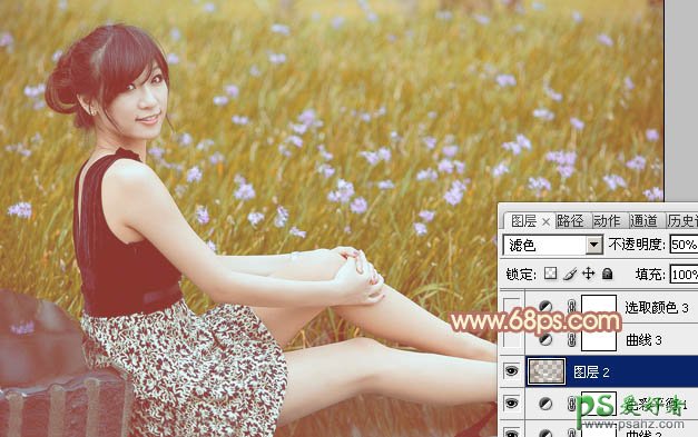 7、按Ctrl + Alt + 2 调出高光选区,按Ctrl + Shift + I 反选,新建一个图层填充红褐色:#816746,混合模式改为“滤色”,不透明度改为:50%,效果如下图。这一步同样增加图片暗部亮度。