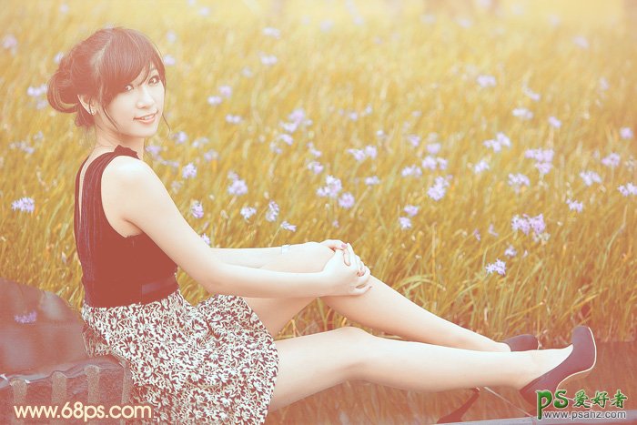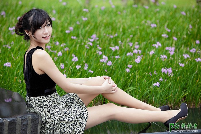 PS调色教程:给草地上的外拍美女写真照调出柔和的阳光效果