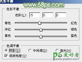 5、创建色彩平衡调整图层,对阴影、中间调、高光进行调整,参数设置如图16 - 18,效果如图19。这一步主要给图片增加淡绿色。