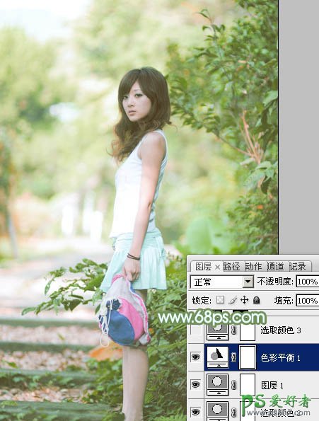 Photoshop给清纯甜美的花季少女外景照调出唯美嫩绿色