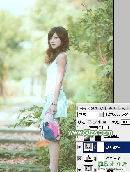 Photoshop给清纯甜美的花季少女外景照调出唯美嫩绿色