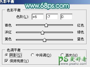 14、创建色彩平衡调整图层,对阴影,中间调进行调整,参数设置如图34,35,确定后把图层不透明度改为:50%,效果如图36。这一步微调图片高光及暗部颜色。