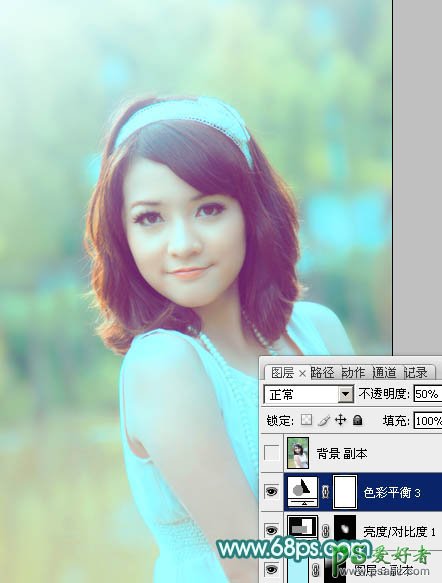 Photoshop给清纯甜美的花季少女外景照调出唯美嫩绿色