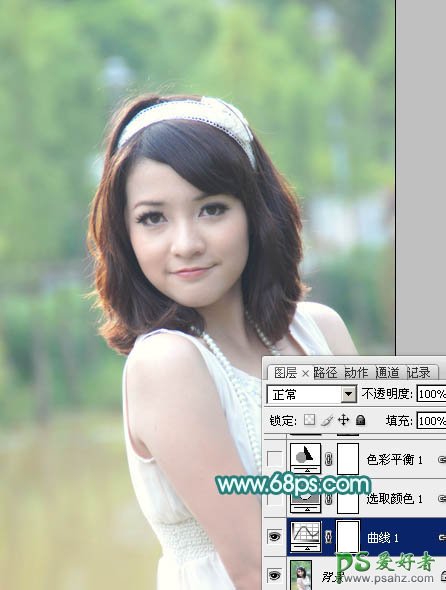Photoshop给清纯甜美的花季少女外景照调出唯美嫩绿色