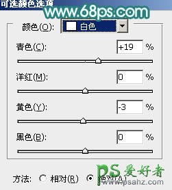 2、创建可选颜色调整图层,对白,黑进行调整,参数设置如图5,6,效果如图7。这一步主要给图片高光部分增加淡青色。