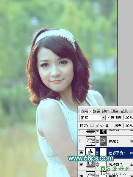 4、按Ctrl + Alt + 2 调出高光选区,按Ctrl + Shift + I 反选,然后创建曲线调整图层,对RGB、红、绿、蓝进行调整,参数设置如图11 - 14,效果如图15。这一步微调图片暗部颜色。