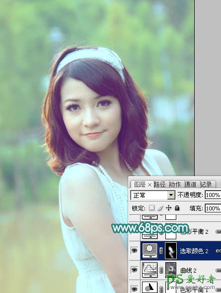 Photoshop给清纯甜美的花季少女外景照调出唯美嫩绿色