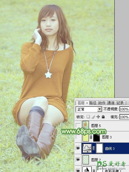 Photoshop给绿草地上的美腿诱惑少女调出温暖如春的阳光色