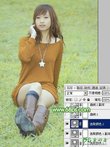 Photoshop给绿草地上的美腿诱惑少女调出温暖如春的阳光色