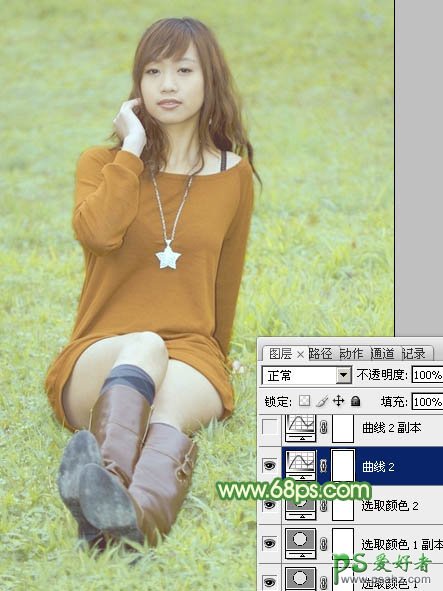 Photoshop给绿草地上的美腿诱惑少女调出温暖如春的阳光色