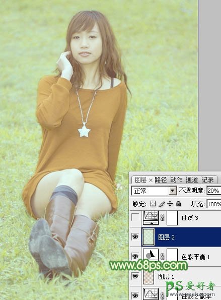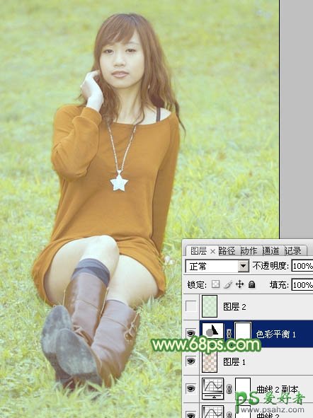 Photoshop给绿草地上的美腿诱惑少女调出温暖如春的阳光色