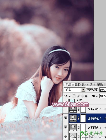 PS给绿草地上甜美的少女写真照调出小清新的粉红色效果