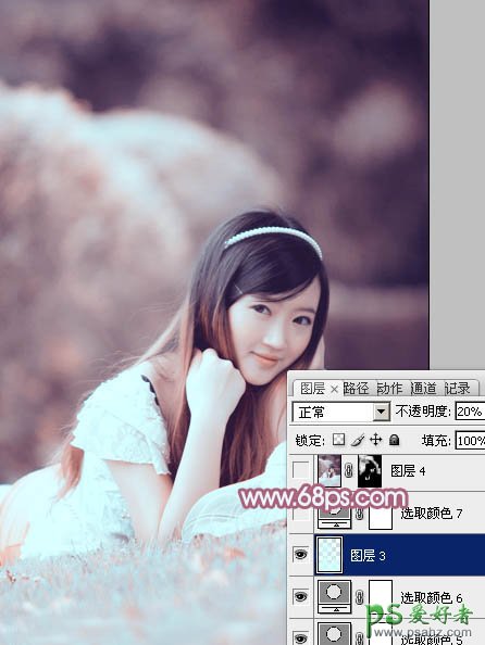 12、按Ctrl + Alt + 2 调出高光选区,新建一个图层填充淡青色:#CFFFFF,不透明度改为:20%,效果如下图。这一步给图片的高光部分增加淡青色。