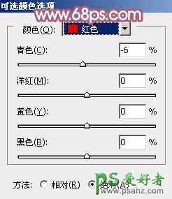 13、再创建可选颜色调整图层,对红、黄、青、洋红、白、黑进行调整,参数设置如图34 - 39,效果如图40。这一步微调图片暗部及高光部分的颜色。