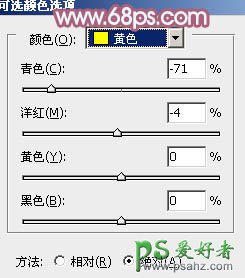 1、打开素材图片,创建可选颜色调整图层,对黄,绿进行调整,参数设置如图1,2,效果如图3。这一步给图片增加暖色。