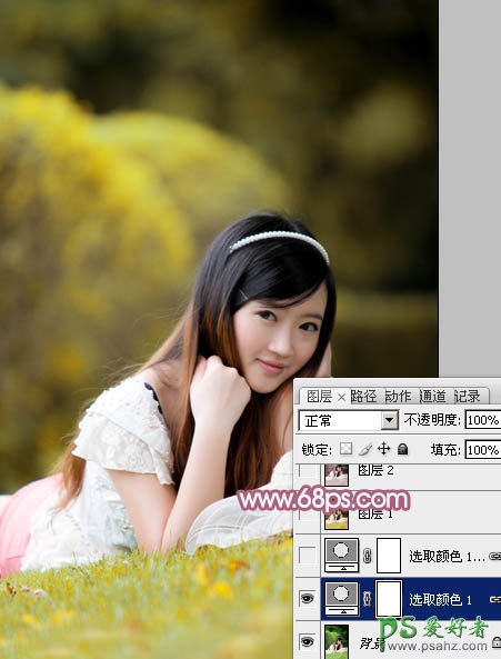 PS给绿草地上甜美的少女写真照调出小清新的粉红色效果