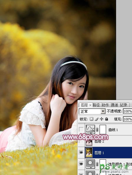 PS给青青草地上的美腿玉足少女写真照调出温暖的橙黄色