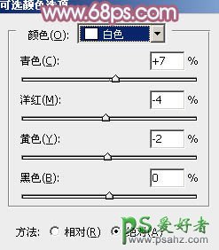 7、创建可选颜色调整图层,对红、黄、白进行调整,参数设置如图15 - 17,效果如图18。这一步给图片增加一些橙红色。