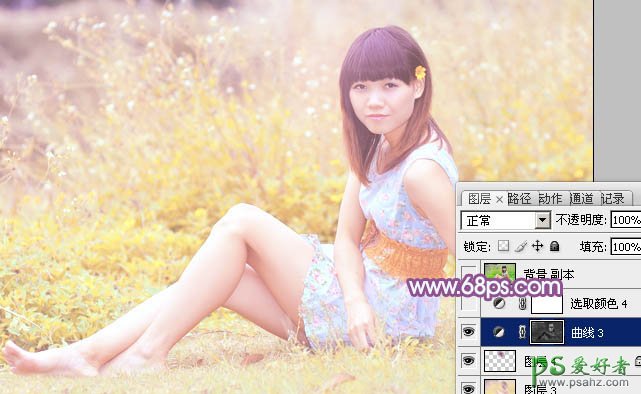12、按Ctrl + Alt + 2 调出高光选区,按Ctrl + Shift + I 反选,创建曲线调整图层,对RGB、红、蓝通道进行调整,参数及效果如下图。这一步适当加强图片暗部颜色。