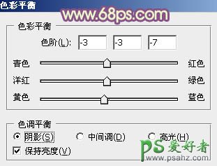 5、创建色彩平衡调整图层,对阴影,高光进行调整,参数设置如图16,17,效果如图18。这一步给图片增加橙黄色。