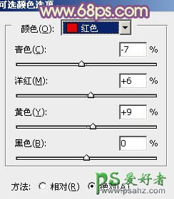 9、创建可选颜色调整图层,对红,黄进行调整,参数设置如图23,24,效果如图25。这一步给图片增加橙黄色。