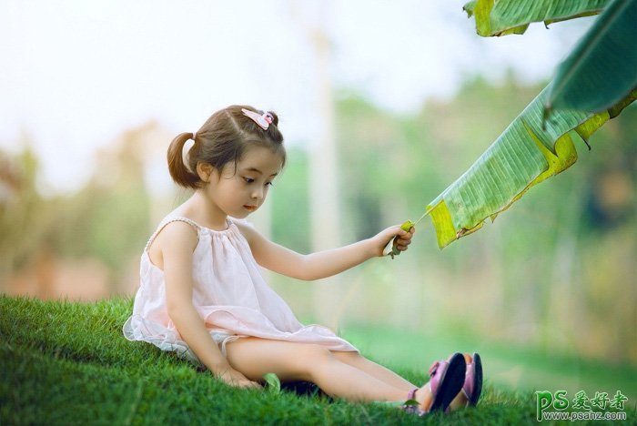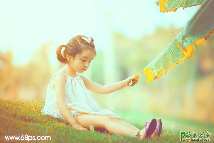 ps调色实例教程:给芭蕉叶下可爱的小女孩儿调出暖黄色