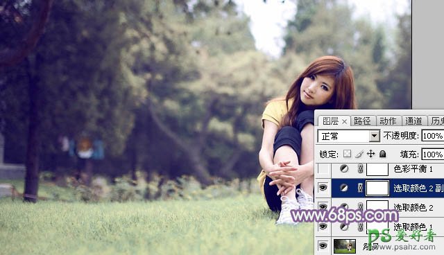 今天我们来学习一篇漂亮的PS美女照片调色实例教程,ps调色,给树林里的美少女艺术照调出唯美色彩,我们的平面设计师利用Photoshop给清纯自拍少女调出谈雅的绿紫色效果,大家好好学习一下吧。 最终效果 原图 1、打开素材,创建可选颜色调整