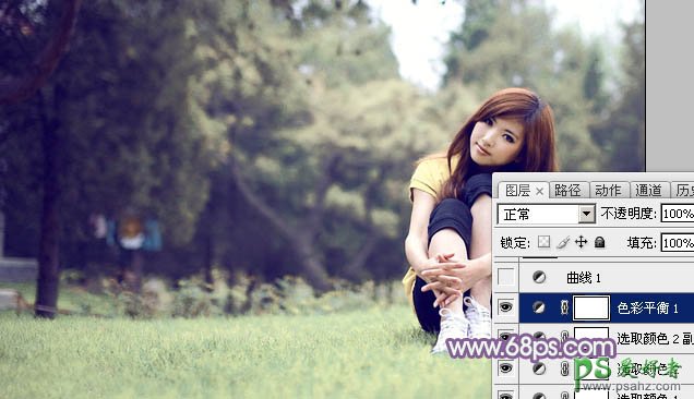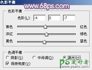4、创建色彩平衡调整图层,对高光进行调整,参数及效果如下图。这一步给高光部分增加淡黄色。
