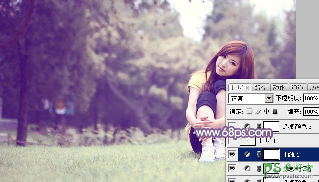 Photoshop给清纯自拍少女调出谈雅的绿紫色效果