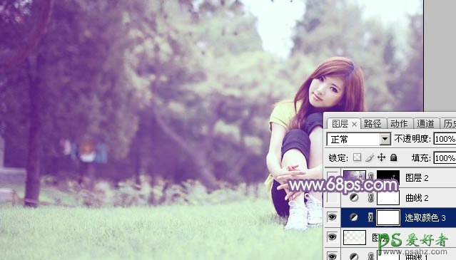 Photoshop给清纯自拍少女调出谈雅的绿紫色效果