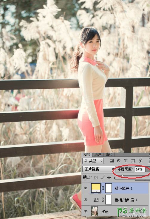 9、降低不透明度到14%,这里也是凭感觉来的。