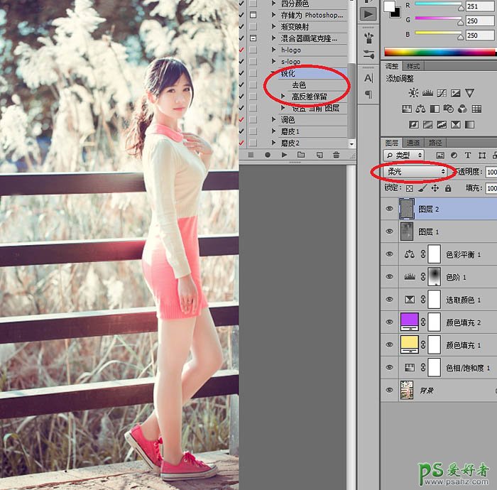 15、盖印所有图层 去色 高反差保留 柔光 对画面进行锐化,然后用蒙版把头发部分刷一下。
