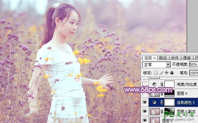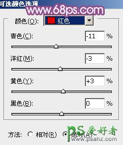 15、创建可选颜色调整图层,对红,白进行调整,参数设置如图42,43,确定后把图层不透明度改为:50%,效果如图44。这一步微调图片主色及高光部分的颜色。